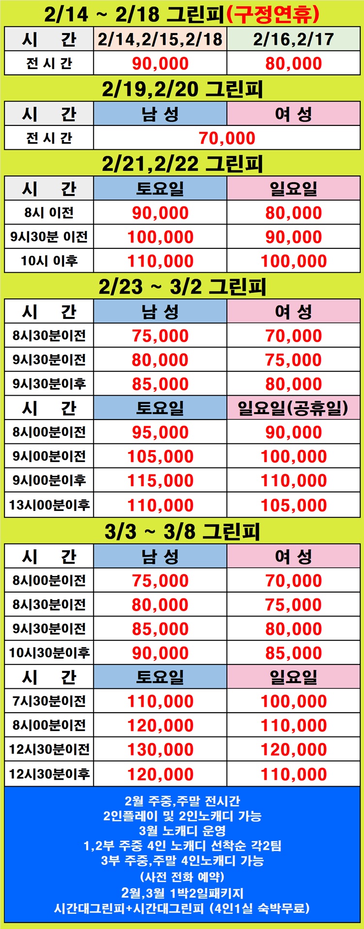 2/14 ~ 3/8 그린피 안내