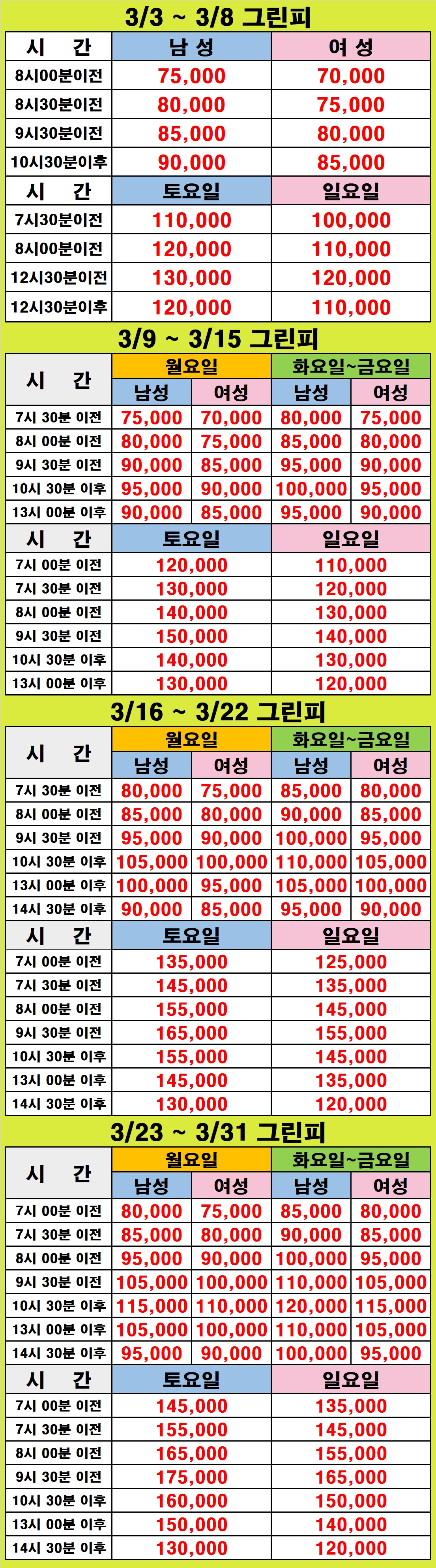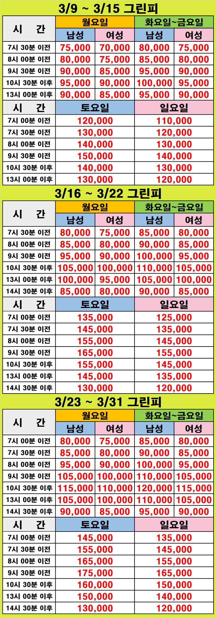 3/3 ~ 3/31 그린피 안내