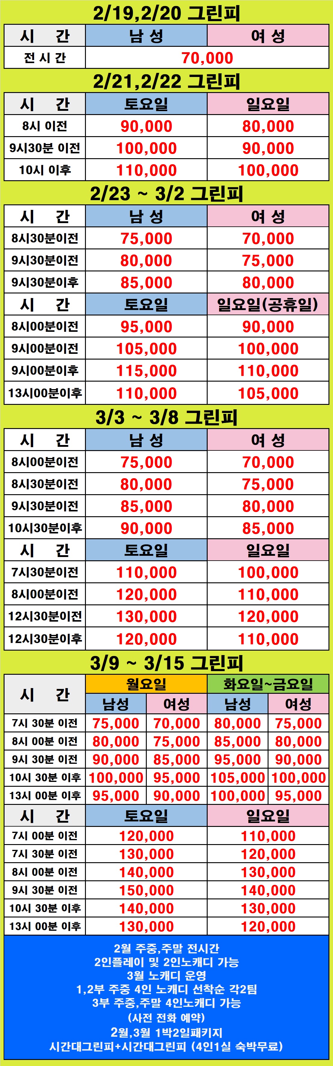 2/19 ~ 3/15 그린피 안...