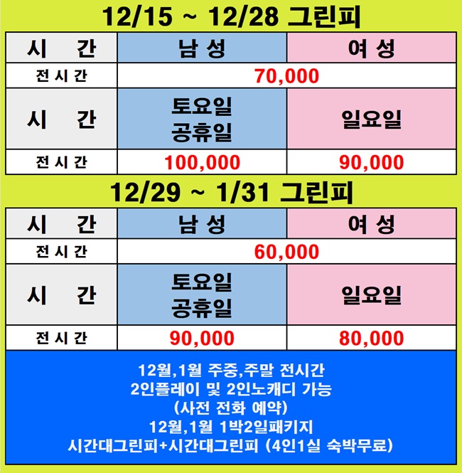 12/15 ~ 12/31그린피 ...